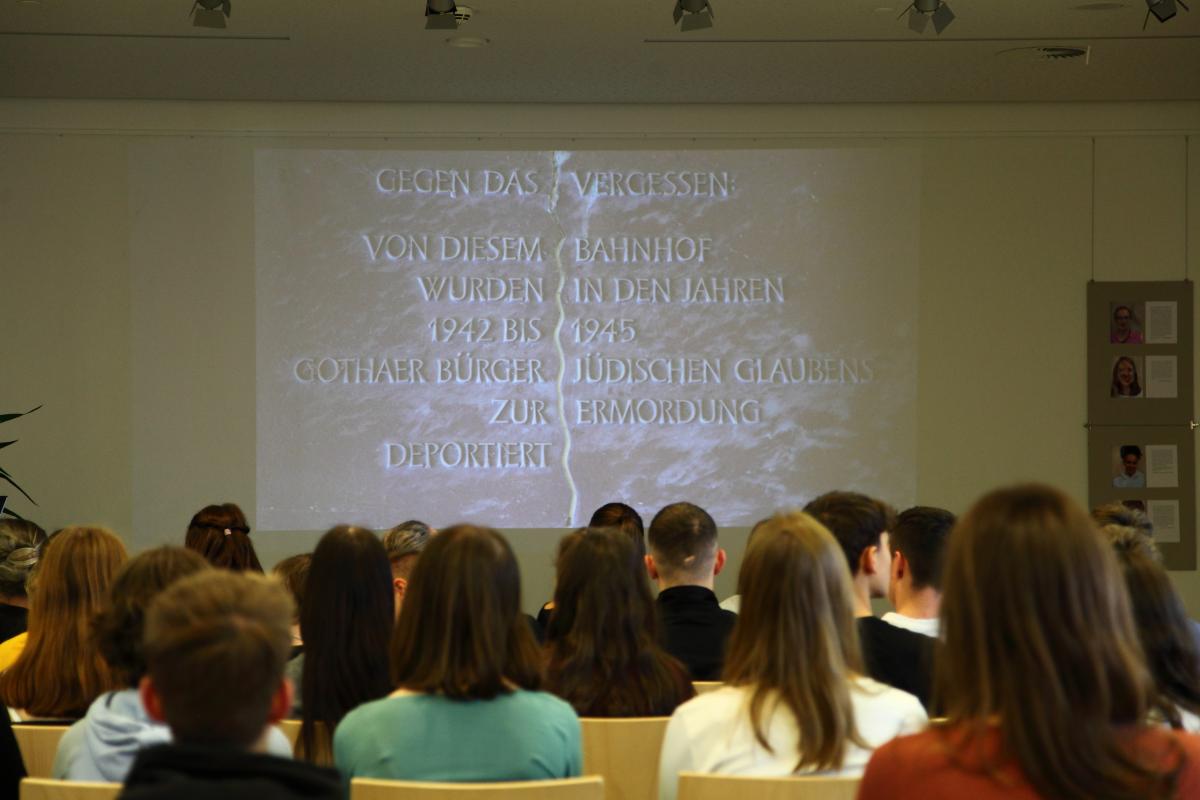 Für Jana Kristek, unsere Kunst- und Geschichtslehrerin und Initiatorin des Projekts, war die Ausstellung ein Herzensanliegen: „Ich wollte, dass die Jugendlichen über die Grenzen des Unterrichts hinaus ins Nachdenken kommen – über die Schicksale der Verfolgten, aber auch über unsere Gegenwart. Mir war wichtig, dass sie Geschichte nicht nur als etwas Vergangenes begreifen, sondern als etwas, das uns alle bis heute betrifft. Aus dieser Erfahrung heraus entsteht eine Verantwortung, sich einzusetzen für ein friedliches und respektvolles Miteinander.“ Im gemeinsamen Austausch der 20 Teilnehmenden aus Erfurt und Gotha entstanden nicht nur neue Perspektiven auf Geschichte, sondern auch auf aktuelle gesellschaftliche Themen.